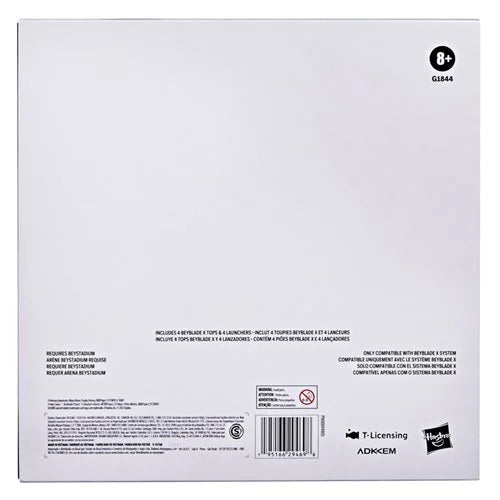 Experience the thrill of Beyblade X, the next generation of Beyblade stadiums, launchers, and tops. The Beyblade X 25th Anniversary Set includes 4 launchers and 4 Attack Type tops with Attack Type Blades: Dragoon Storm 4-60RA left-spin top, Storm Pegasis 3-70RA right-spin top, Victory Valkyrie 2-60RA right-spin top, and Dran Sword 3-60F Attack Type right-spin top. Launch right into battle or reconfigure the interchangeable blades, ratchets, and bits to build your perfect Beyblade top. Beystadium required, sold separately. Beyblade X features the X-Celerator Gear System to level-up your game. When the gear of a Beyblade X top engages the rail of the Beystadium arena, it can super-accelerate into an Xtreme Dash around the stadium for crushing collisions and epic bursts. Launch your tops into fierce clashes against your opponent's to score points. Hasbro Beyblade toys with authentic Takara Tomy die-cast metal tops make great kids gifts for ages 8 and up. Includes: 4 Beyblade X Tops and 4 Launchers.