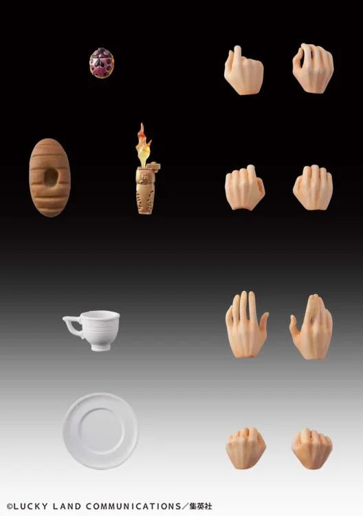 Giorno Giovanna Second from the "Golden Wind" chapter of "JoJo's Bizarre Adventure" is making his debut in the favorite Super Action Statue line! Standing about 5.9 inches tall and insanely poseable, this awesome figure comes with extra hands, a teacup with saucer, a lighter and more! A stand with a poseable arm is also included. Get ready to travel the world and battle Stand users in style by ordering your figure today!