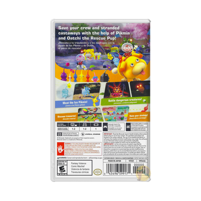 - Partner with Oatchi, your dependable space dog, who can help with things like smashing obstacles and carrying Pikmin throughout your adventure.